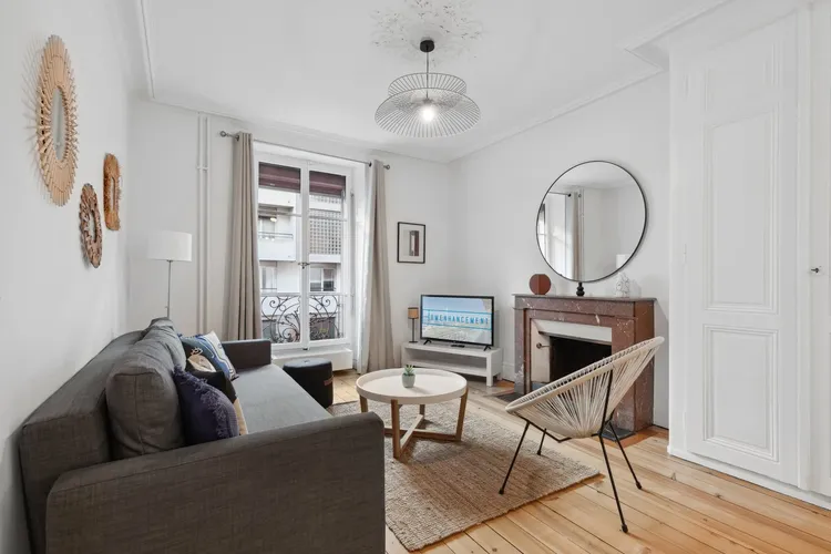 Ref: 956000Large contemporary two bedrooms of 75 m2, located in a historical residence close to all amenities, public transport, shops . Sober and contemporary decoration: sofa, furniture and design lights.The kitchen is fully equipped and the bathroom has a bathtub and a washing-machine. It also has separate WC. Ideally located, this flat is situated within 10 min. of the United Nations by public transportation and near to the Migros of la Servette at 5 min. walk.