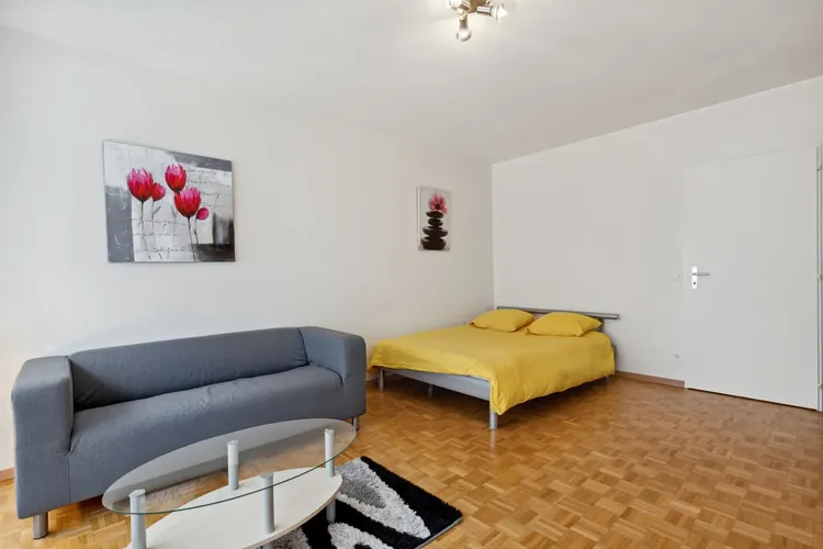 Ref: 301000Pratique pour une utilisation quotidienne, ce studio vous garantit un confort optimal avec son équipement. Son aménagement harmonieux et moderne de couleurs sobres inspire sérénité. La pièce à vivre est composée d'un lit double, une armoire à habits, une table, un bureau, un canapé et une télévision. La cuisine est entièrement agencée et la salle de bain comprend une baignoire. L'espace est intelligemment aménagé afin que vous puissiez concilier vos loisirs, votre travail et vos moments de détente.